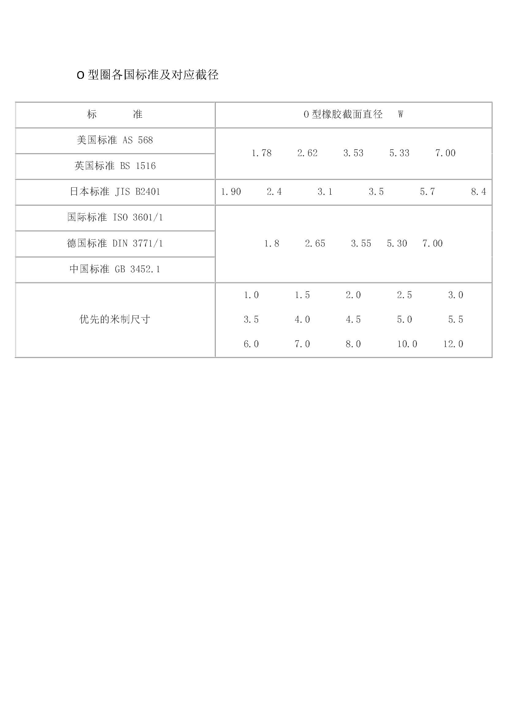 O型圈各國標準及對應(yīng)截徑