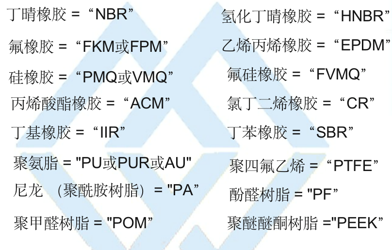 液壓密封件常用材料代號(hào)